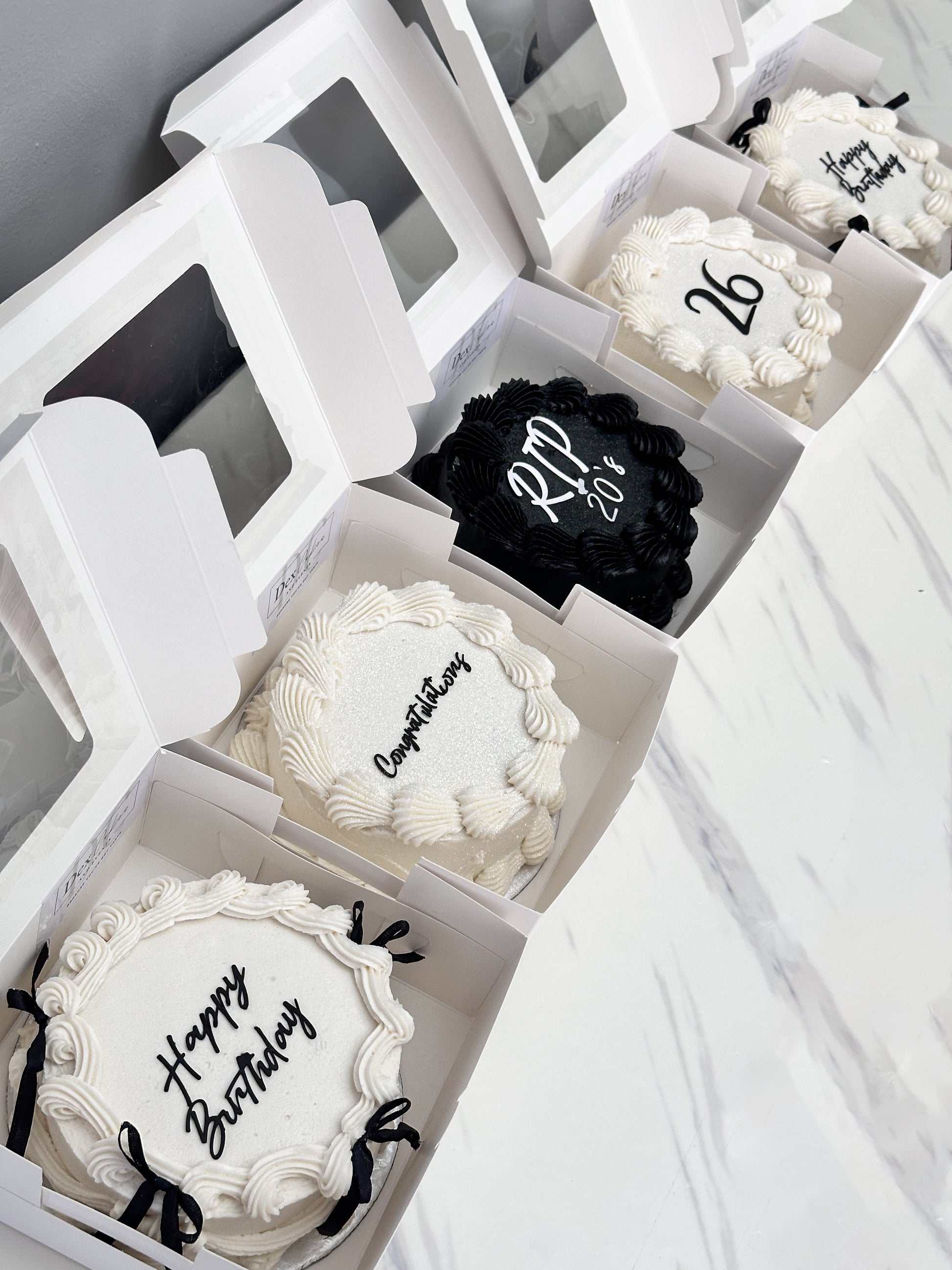 A bold mini cake for big personalities. Featuring vintage-style piping, and a custom topper — perfect for birthdays, vibes, or gifting.