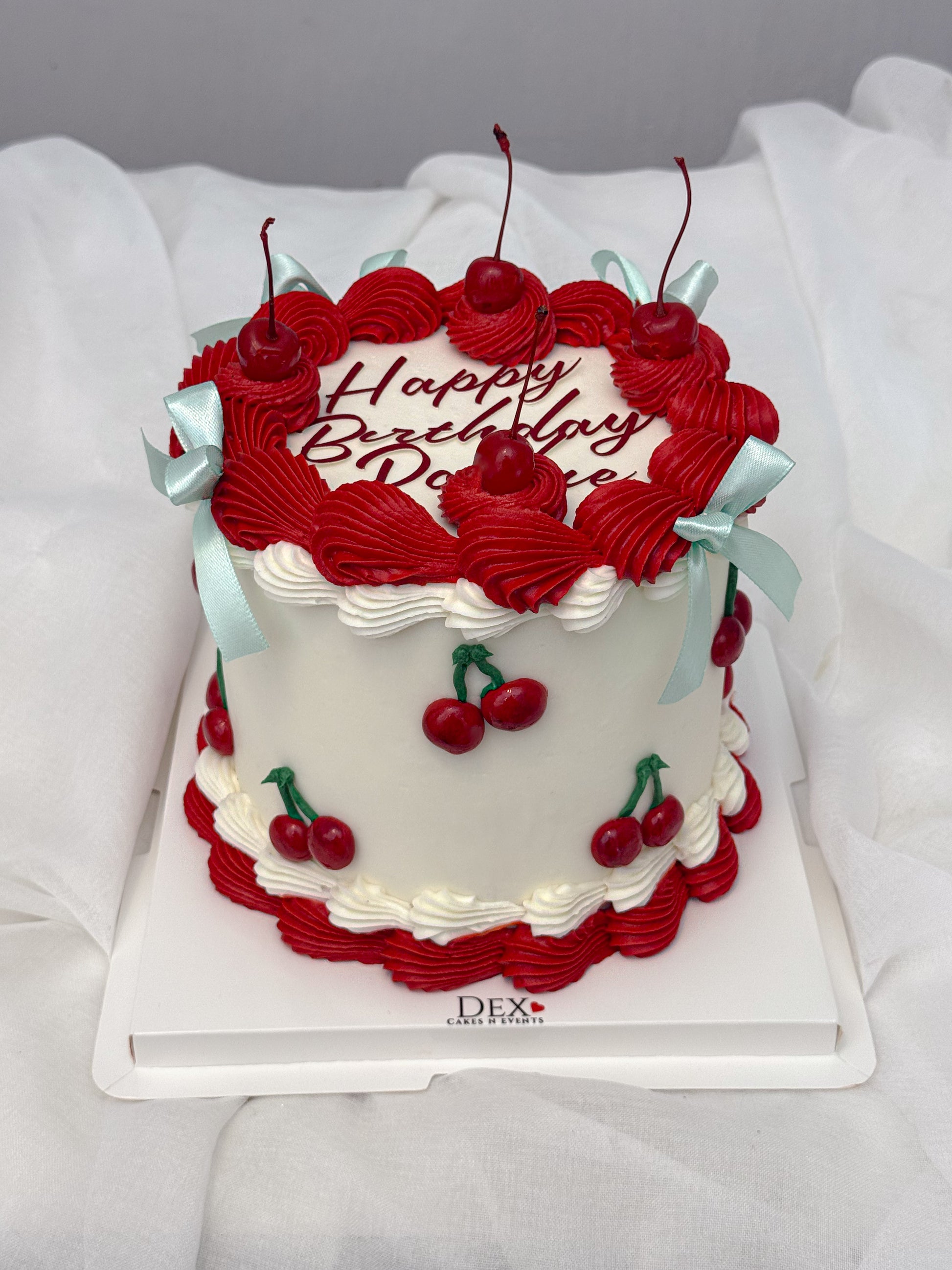 Cherry Kiss Cake is perfect for celebrating Valentine’s Day, birthdays, and other special moments. Finished with smooth buttercream and classic cherry details, this cake is available in different sizes to suit your celebration.